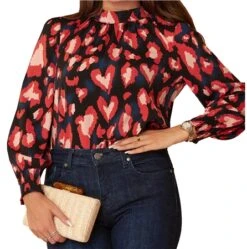 Looking for something chic and sophisticated Our Pink and Black Pattern High Neck Satin Long Sleeve Top is the perfect combination of classy and comfy! With its high pleated neck and long cuffed sleeves, it’s sure to elevate your style game. Style this top with your favourite jeans for an effortlessly chic look.