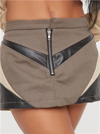 Enter your cool girl era with this most wanted skirt doll. Featuring a khaki material, motocross detailing and a mini length. Team this with a cropped shirt and boots for a vibe we love.