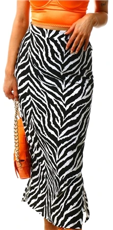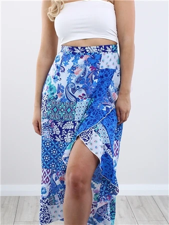 Your Summer collection isn’t complete without this statement midi. Featuring a frilled hem, wrap detailing and a thick figure skimming waistband. Pair with trainers and a high neck body for a glam casual look