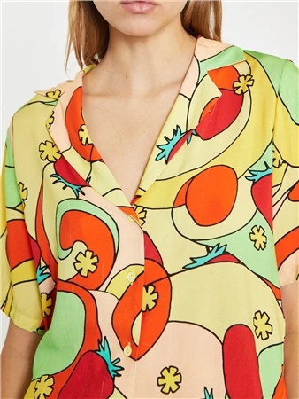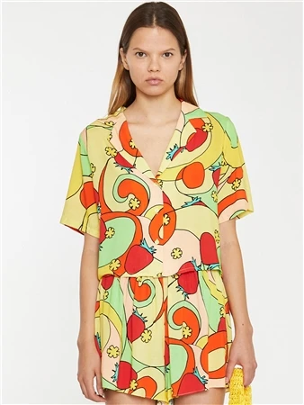 Glamorous Women’s Yellow Swirl Print Collared Shirt. This classic shirt with a refreshing bold print is destined for your wardrobe this season. Featuring a revere collar and button front with short sleeves, this shirt will look great on you
