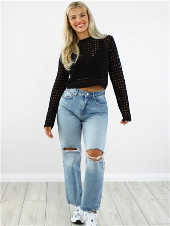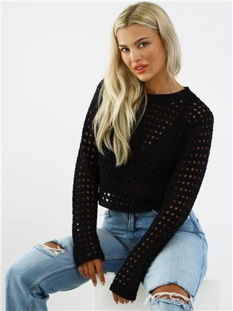 - If it isn’t crochet we don’t want it! Our Reese Black Crochet Crop Top is a super vibrant crochet knit with long sleeves