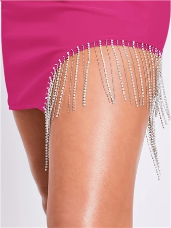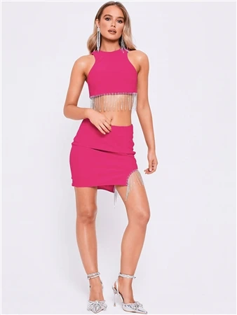 Make them stare this season in our Diamanté Mini Skirt! Featuring an asymmetric detail and a gorgeous diamanté trim, it’s a must have to add to your wardrobe!