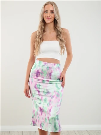 Be the first to review “Saint Genies Pink / Cream Blurred Print Satin Midi Skirt” Cancel reply
