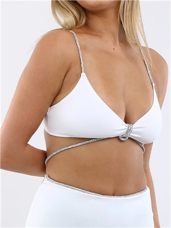 Add this sassy crop top to your night-out wardrobe! Featuring beautiful diamante trim and a bodycon shape, this top is sure to get heads turning