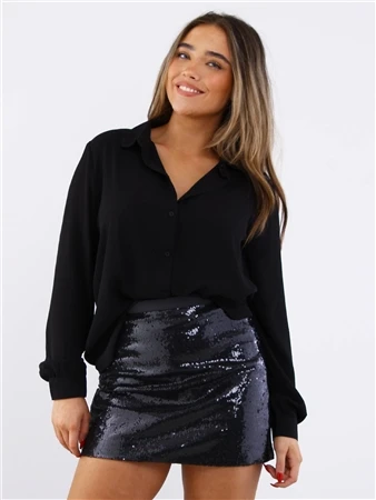 One for your party look, crafted in a full sequin fabric and finished with satin waistband. A a-line fit, style with a white tee and silver heels for a put together going out look.